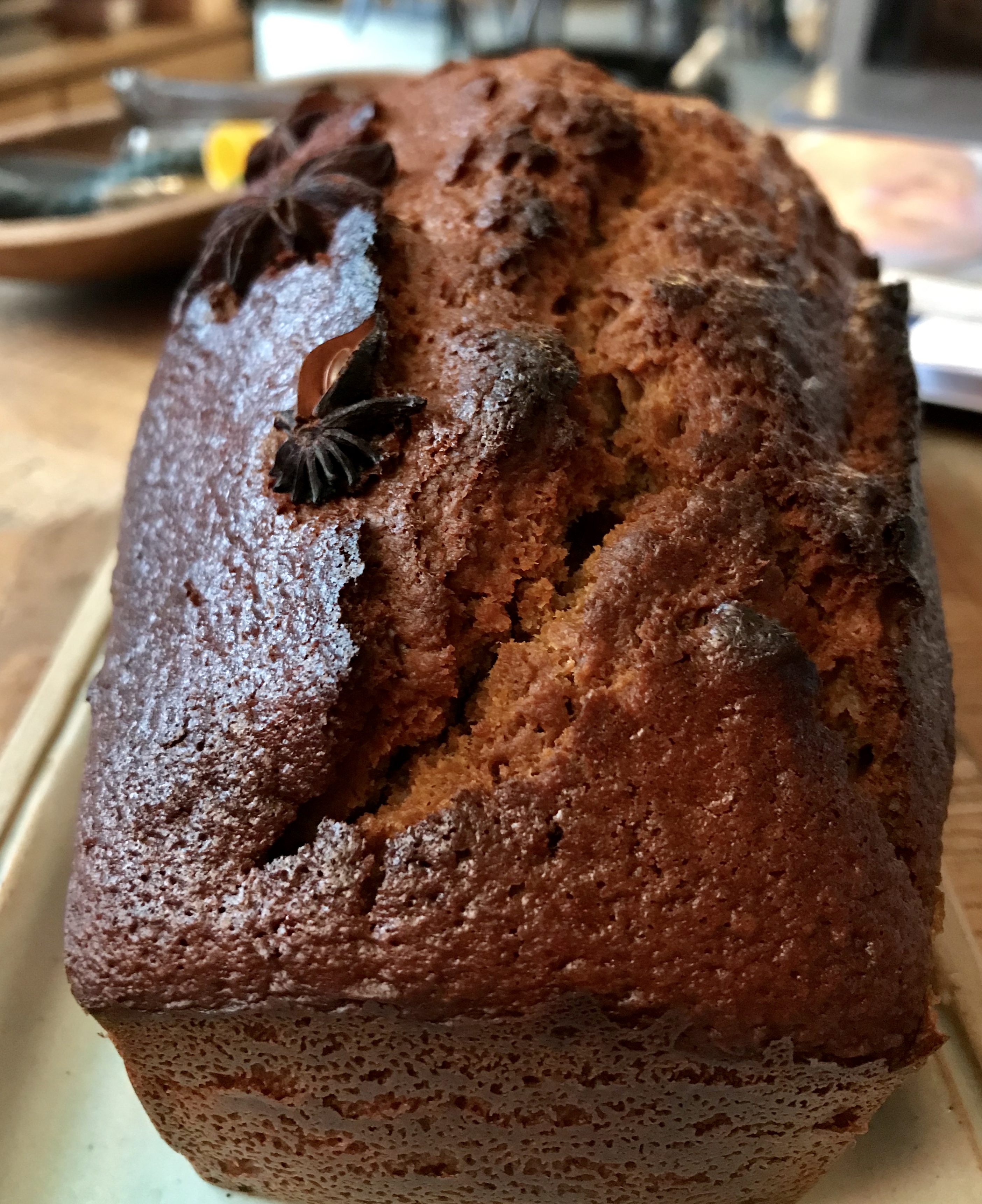 Le pain d’épices est dans le four, je viens de voir qu’il gonfle généreusement comme dans mon souvenir. J’y ai mis les épices de Madagascar, pour essayer, et des fleurs de badiane parce que c’est joli. C’est la recette qui m’a fait aimer ce gâteau moelleux et très parfumé, loin de l’infâme amalgame de miettes sèches vendu en supermarché.